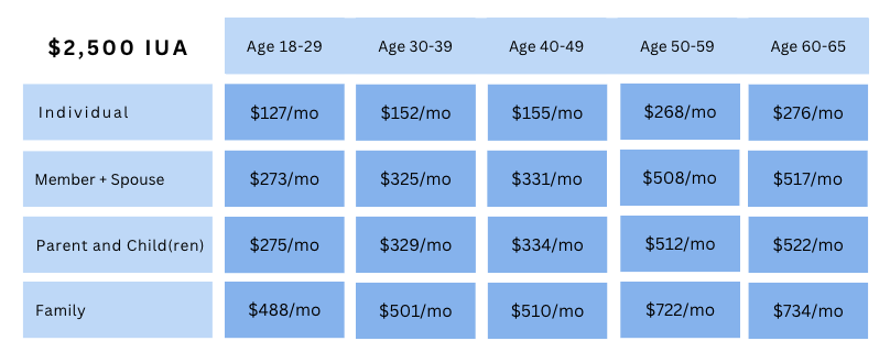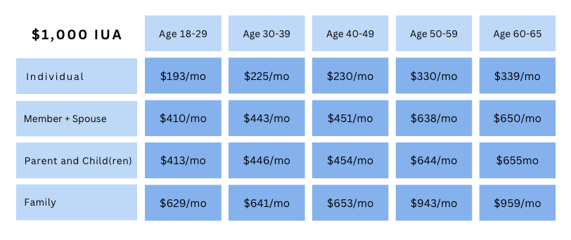 TIP: If you select the $5,000 IUA, you may be saving monthly, but if your family has 3 major medical needs in a year, you could be responsible for $15,000 ($5000 X 3) out of pocket.